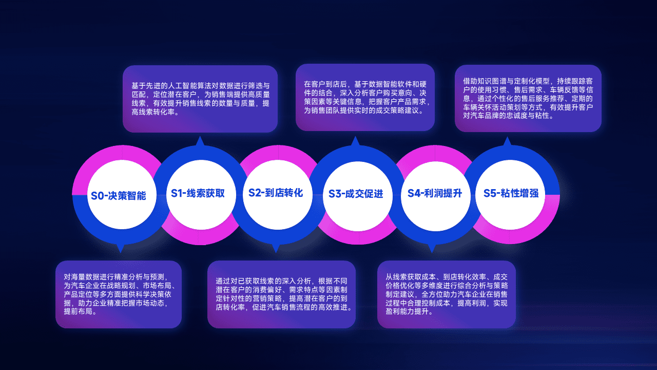 通过拓宽潜在客户来源、、、优化线索分配并提高到店转化率,,,,以增强销售效率。。同时,,,,利用线索数据不断优化分析模型,,,有效提升转化率,,,,扩大营销影响力。。。。